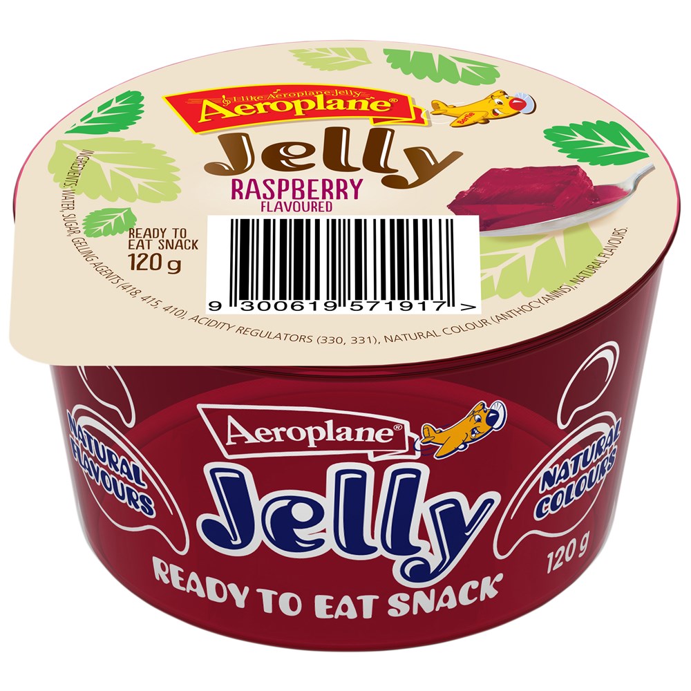 Aeroplane's Ready to Eat Raspberry flavoured jelly cups contain the same great flavours of regular Aeroplane Jelly in a convenient ready to eat snacking format.