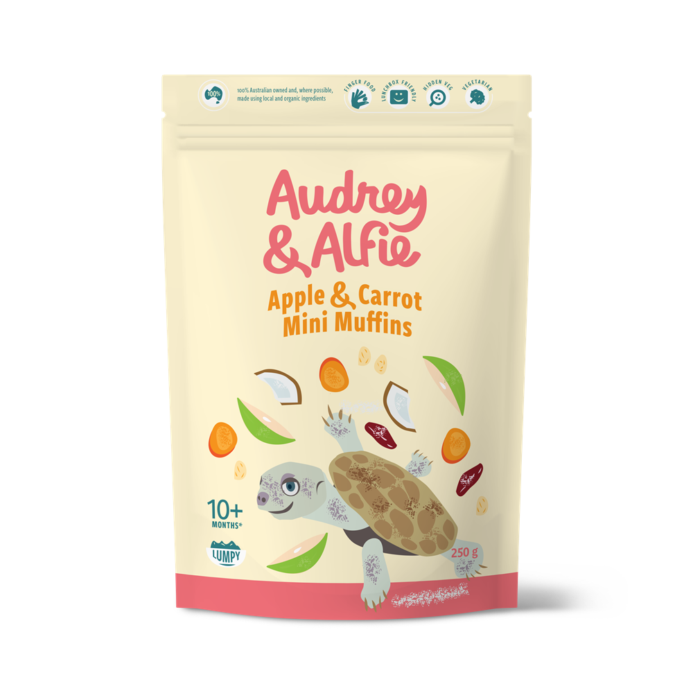 AUDREY & ALFIE FINGER FOODS APPLE & CARROT MINI MUFFINS 250G 6C