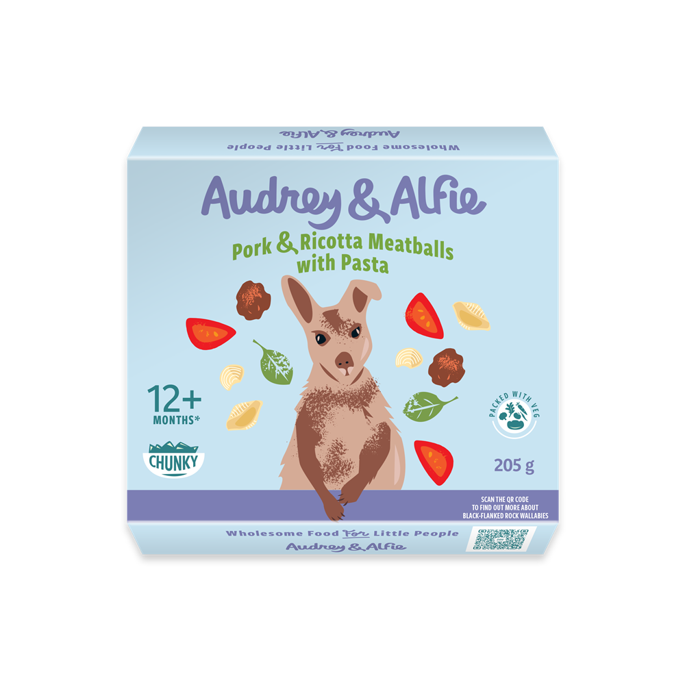 Free-range Australian pork and ricotta meatballs. Served in a hidden veggie tomato sauce with carrot, zucchini, capsicum, celery and spinach.