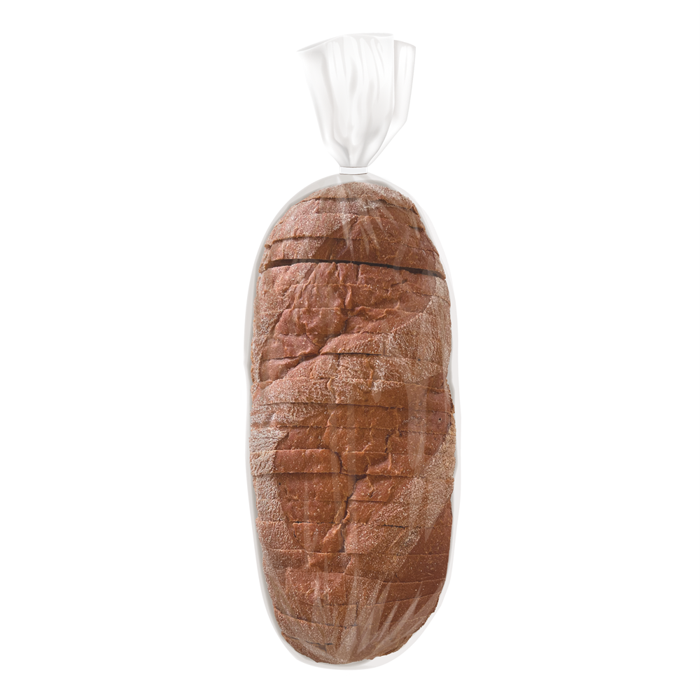 A rye sourdough loaf. Baked until golden and sliced for convenience.