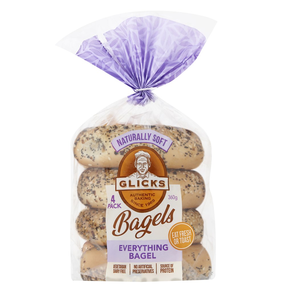 Made using Glick's authentic European recipe for fresh, naturally soft, traditional bagels. Enjoy fresh or toasted.