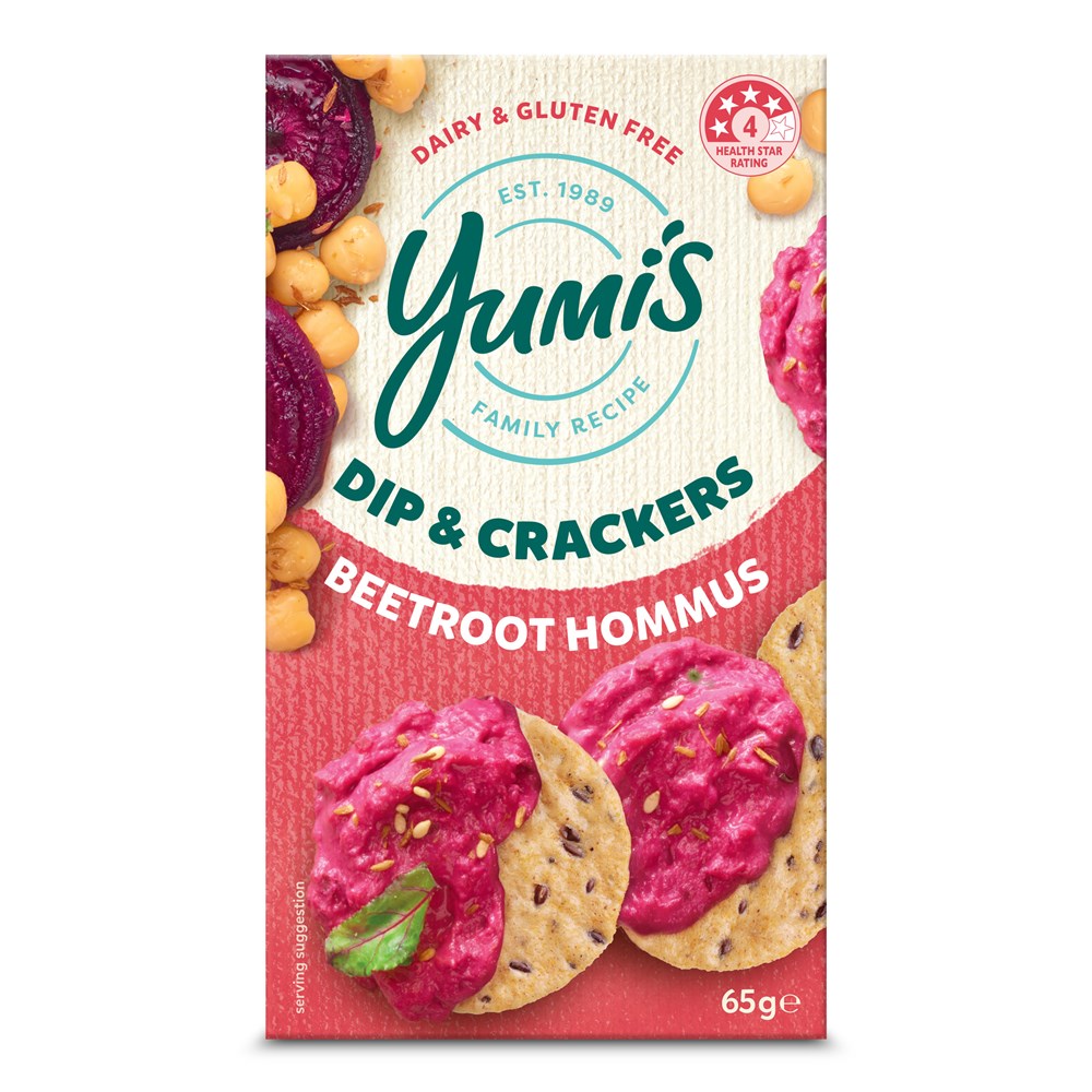 Yumi’s classic hommus has been blended with roasted beetroot to make this delicious taste sensation.